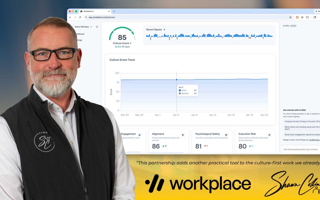 This partnership gives Shawn and his clients access to Workplace’s AI-powered culture measurement platform, which helps organizations identify patterns tied to burnout, psychological safety, conflict, employee engagement, alignment, and execution risk.